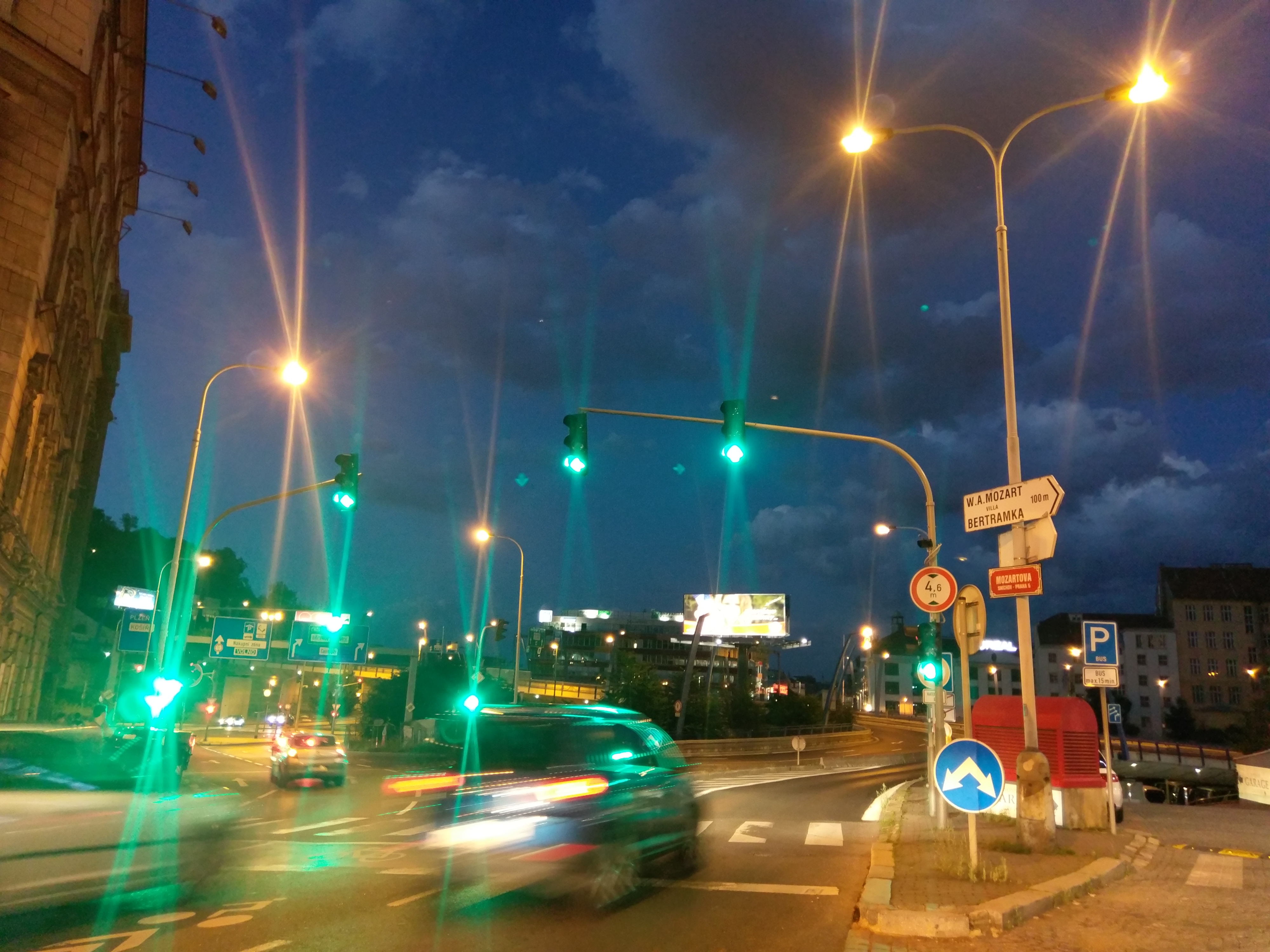 Proti objektivu nemám námitky, nicméně je třeba počítat s protisvětlem – vstupní čočka je chráněná sklem zdá se bez antireflexní vrstvy a protisvětlo se na výsledcích projevuje. Hodně je to vidět na noční fotce dole.