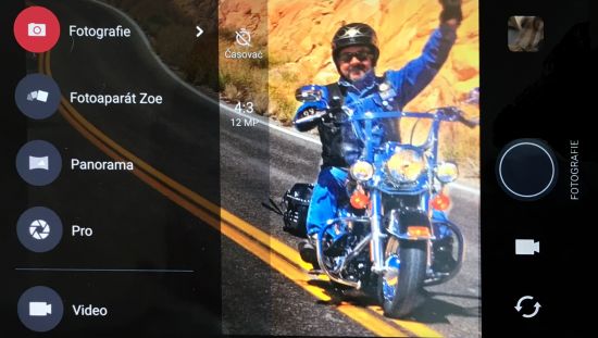 Ikona této aplikace je v základní nabídce. Pro fotografa jsou zajímavé tři režimy: Fotografie, Panorama a Pro. Zde jsou ty volby: