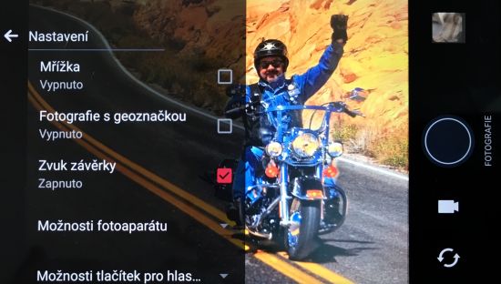 Ani teď k tomu nemám co dodat. Nuže, modul Fotoaparát je v podstatě zcela automatický režim. Můžete zde zapnout / vypnout blesk a také lze zapnout a vypnout HDR (vyrovnávání stínů) anebo ho mít nastavené na AUTO režimu – to doporučuji. Tady vcelku toho není mnoho k výkladu.
