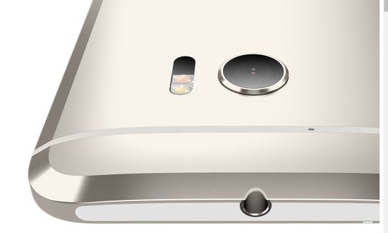 Objektiv hlavního fotoaparátu je umístěn v ose, vedle něho je dvojice LED fleší s různou hodnotou barvy a emitorem laserového paprsku pro podporu autofokusu. HTC je na zveřejnění technických detailů skoupý, nicméně podle nejasných informací je zde aplikován systém měření odezvy nízkoenergetického (zdraví neškodného) infračerveného laserového paprsku. Jiný systém laserového AF používá paprsku jako pomocného AF světla, nicméně zdá se, že to opravdu není tento případ. Objektiv pomocného selfíčkového fotoaparátu je umístěn vpravo nahoře, má ohniskovou vzdálenost 2,34 mm. Zde je optická stabilizace opravdu prvek komiky.