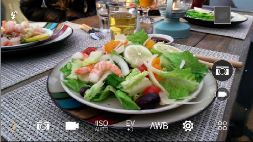 Jeho vlastnosti jsou velmi podobné foťáku v devítce bez přívlastku, proto převezmu info z původního článku. Jde o mobil, tudíž ovládáme přístroj dotykovou obrazovkou. Screeny jsem převzal z návodu. Ovládací prvky jsou soustředěné ve spodní části: odleva je to volba fotografování nebo video. Dále je nastavení citlivosti ISO, v základním nastavení je to na automatice, následuje korekce expozice a AWB, tedy nastavení bílé. Ozubené kolečko vede k dalším parametrům, v podstatě jde o setup. Ta čtyři kolečka do čtverce vedou k volbě režimů zobrazení: autoportrét (=selfíčko, přední kamera, fotíme sama sebe), základní fotoaparát, panoramatické focení, rozdělený snímek – fotíme současně sebe a něco jiného, bokeh, to je oddělení objektu ve vzdálenosti 60 cm od pozadí, fotokoláž – to je koláž ze selfíček a důležitá věc, RAW. K tomu RAWu se dostanu. Ty tři tečky zcela vlevo odkrývají a zakrývají proužek s ikonami.
