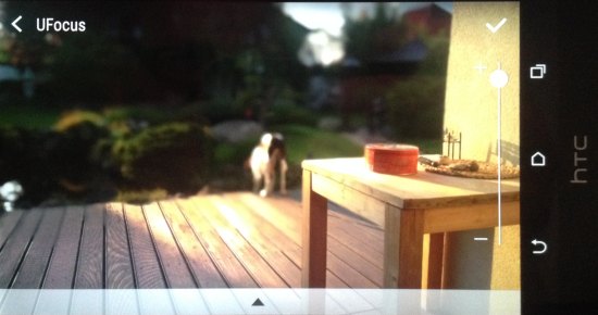 To vše je celkem obvyklé. Neobvyklosti nastanou po přepnutí do duo cam režimu. Exponovaný snímek se ukládá asi vteřinu, tedy mnohem déle než ten obyčejný. Když se na něj chceme podívat, je v levém dolním rohu označen ikonou duo cam. Klepnutí na ikonu nás dostane do editační části, kde nejdůležitější je položka UFocus, zcela vlevo dole.
