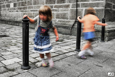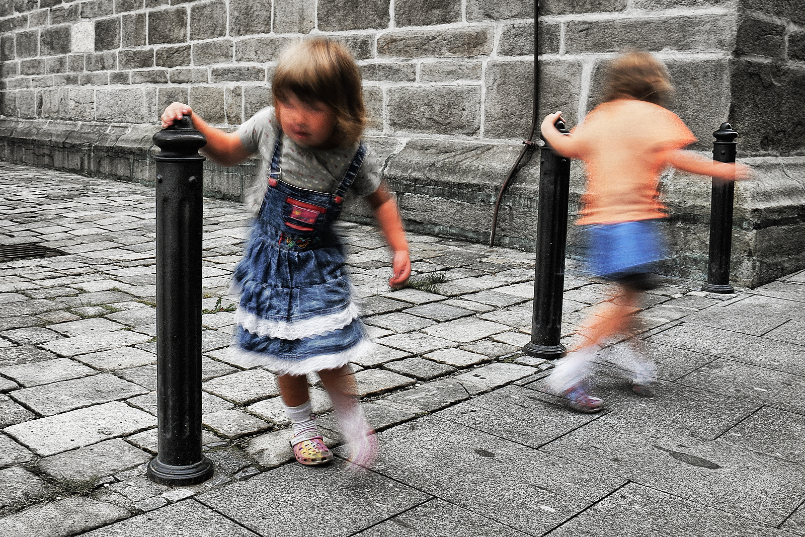 Milou fotku Mileny Vaníčkové (na druhém místě) jsem už též podrobně představoval. Na třetí místo se v závěru propracovala fotka Romana Horáka Dokolečka dokola. Je obrazově zajímavá a taky vystihuje zadání – zachycuje proces jímž rozbitá kolena vznikají. Použil prostředky fotografie: holčičky jsou pohybově rozmazané, to podtrhuje rychlost jejich kmitání, a jsou barevné v černobílém prostředí.
