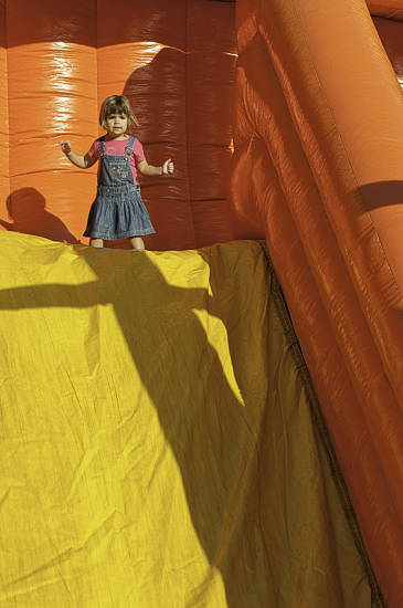 Jásavou barevností zaujme obrázek Václava Kříže – vertikálně komponovaný s důrazem na strmost. Drobná postava holčičky obrazově kontrastuje s nápadnými barevnými plochami. Je to okamžik PŘED akcí, je z toho cítit napětí, jsme napnuti spolu s holčičkou.