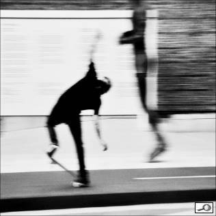 Jinou cestrou šel Pavel Topš, ten částečným rozostřením naopak zvýraznil pohyb. Fotka má prudkou dynamiku, komponovaná je na úhlopříčku – všimněte si, že je to úhlopříčka zprava shora dolů doleva. To je úhlopříčka, která v nás bezděky vyvolává ostražitost, jde proti srsti – proti směru, jímž jsme zvyklí psát texty.