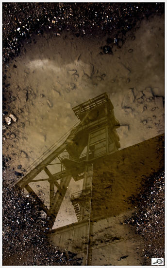 Zatímco předchozí fotka se trochu vymyká z obvykle pochmurného pojetí průmyslových fotek, tato je jak se patří temná. Zrcadlo zašlé pýchy, nazval ji její autor Miloš Buček. Jde zřejmě o odraz v louži, trik často zkoušený, zde velmi zdařile provedený.