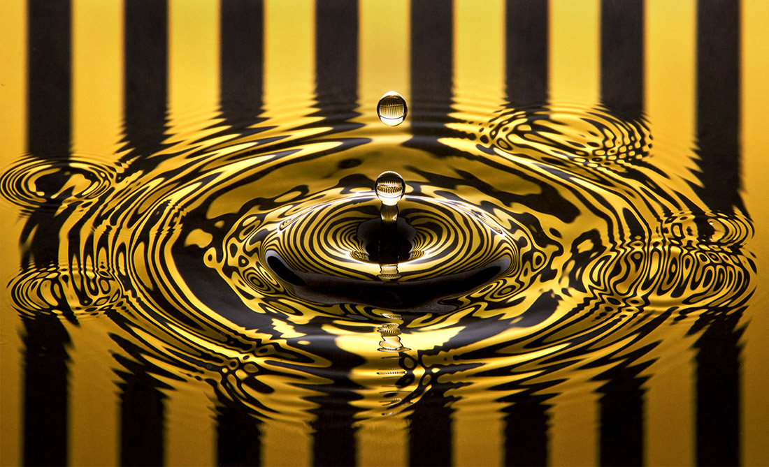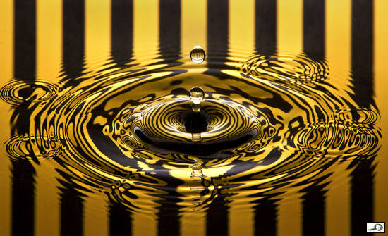 Bedřich Helan má s focením kapek velké zkušenosti a tentokrát se mu podařila kompozice mimořádné obrazové působivosti. Jmenuje se sice nepoeticky, deformace na vodní hladině, nicméně výtvarnou působivost má velikou.