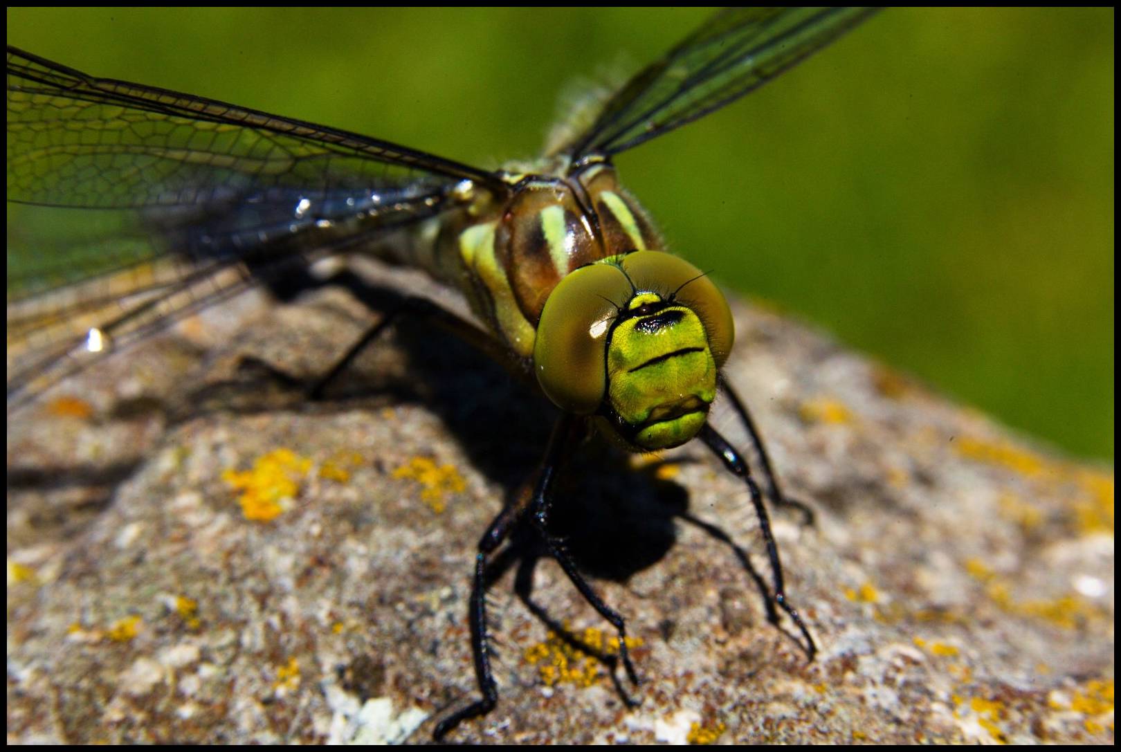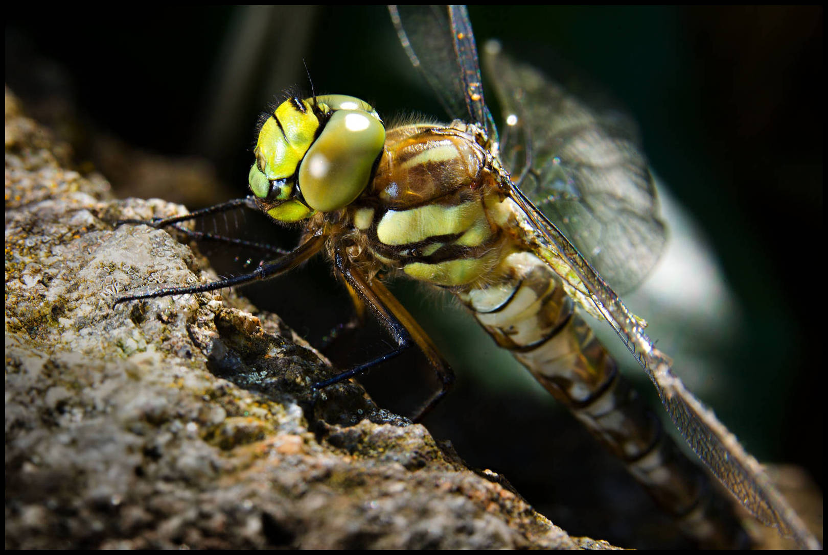 No a trpělivost růže přináší. Snažil jsem se zvolit takovou polohu, aby hlava měla temné pozadí – to je vždy důležité, dívat se, co je za motivem. No a to přední světlo je měkké, nicméně docela důrazné a pěkně tělo vážky modeluje.
