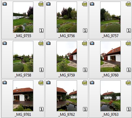 Takže začneme tím, že si vyrobíme 360stupňové panorama. Fotil jsem to širokoúhlým objektivem a dbal na to, aby bylo hodně oblohy. Ta se dá ukrojit vždycky. Obloha byla bílá, to je docela výhoda. Nasekal jsem 11 obrázků: