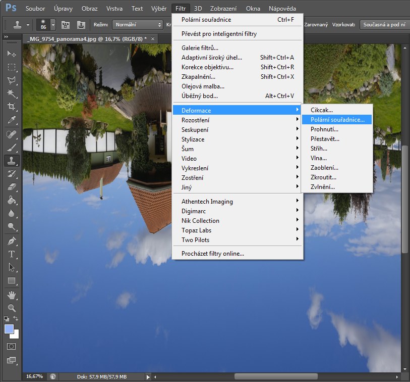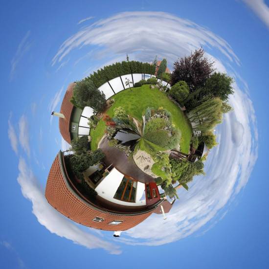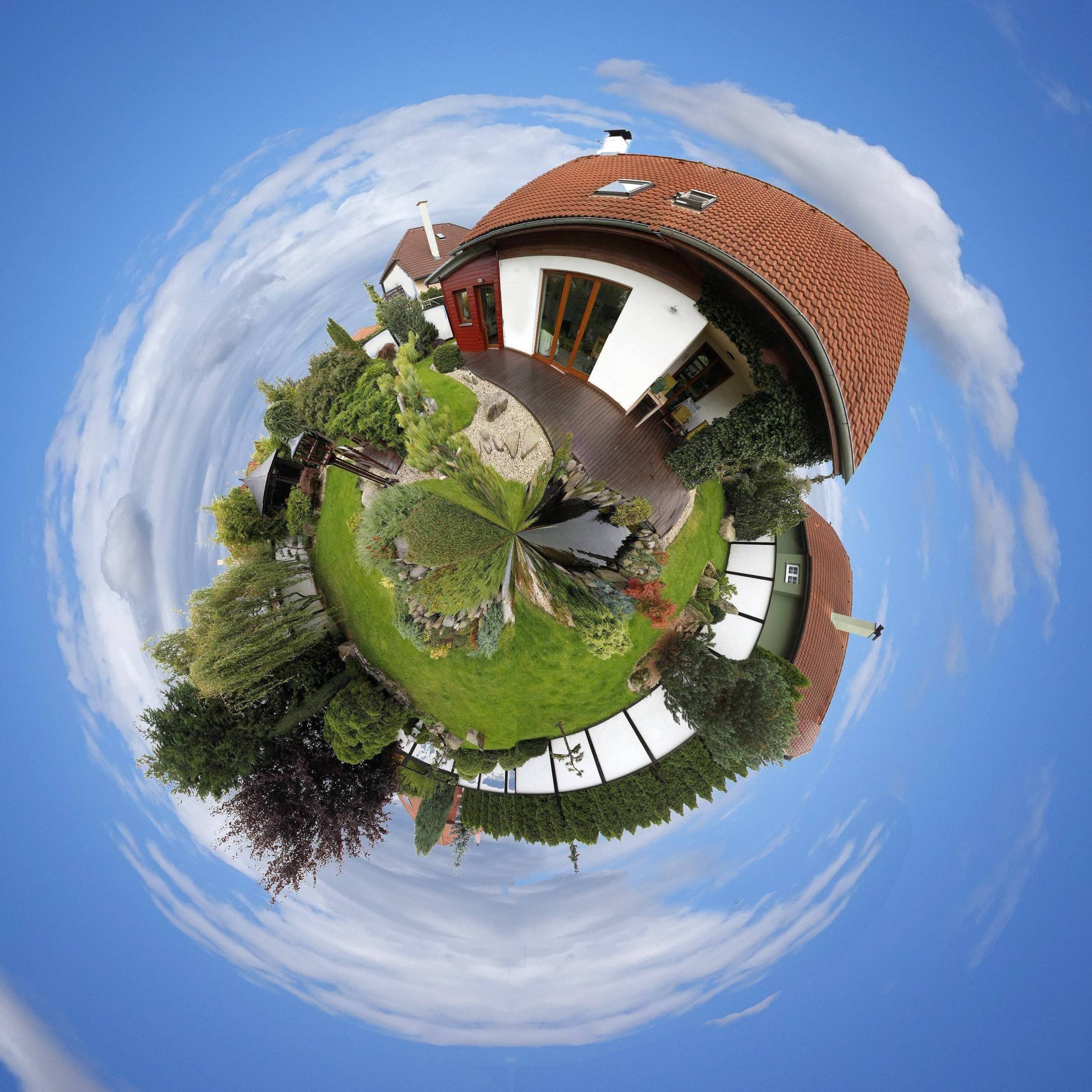 Po jediném cvaknutí se obrázek zkroutí a je z toho Little Planet. Chce to pak drobátko retušovat, tady jsem si pohrál s mraky. Taky je dobře obrázek natočit.