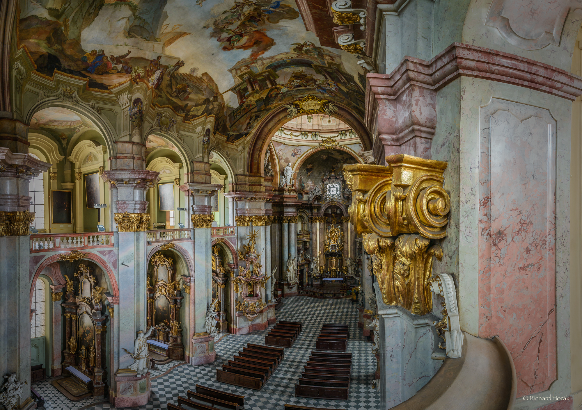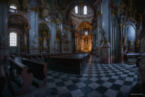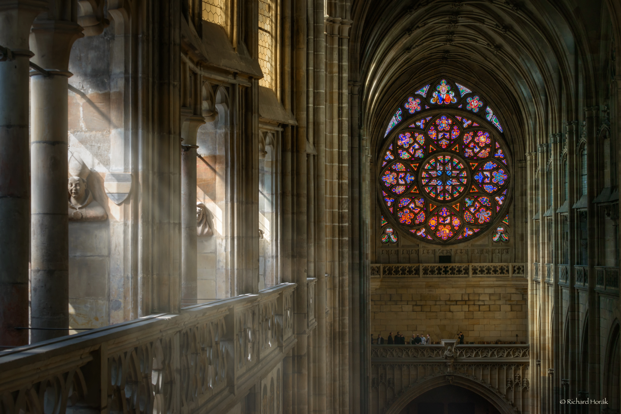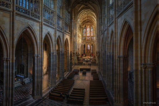 No a protože je to autor, který má své téma, není divu, že v něm pokračuje. Zůstává fascinován interiérem chrámu svatého Víta a jeho fotografie též mají dar fascinovat. Jedna mě zaujala i technicky, nejen svým rozsahem jasů. O něm jsme se bavili už posledně – Richard Horák nepoužívá techniku HDR imagingu. Pracuje v RAW a využívá do maxima schopností Lightroomu postihnout kresbu i barevnost v maximálně širokém rozsahu. Ze snímků svého Nikonu D800 tedy získá takové rozpětí, jaké odpovídá i teoretickým schopnostem tohoto přístroje.
