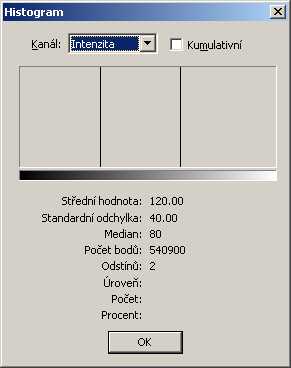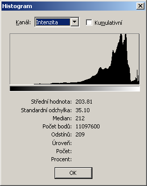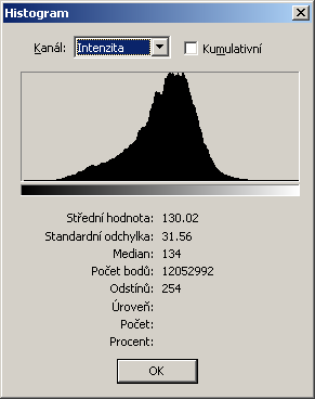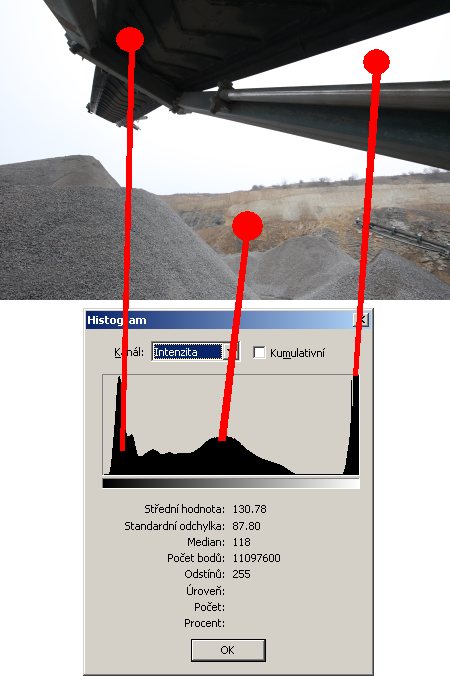 Vpravo není nic, ani ve středu není nic, střední hodnota je pozice 43,40, to jsou hodně temné tóny. Naopak hodně světlý obrázek vypadá takto: