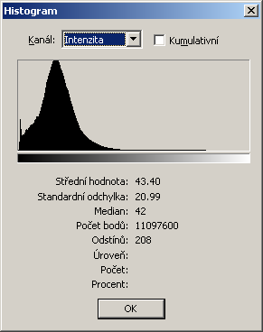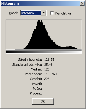 Podívejme se, jak vypadá histogram tohoto obrázku: