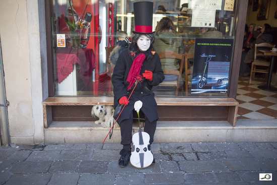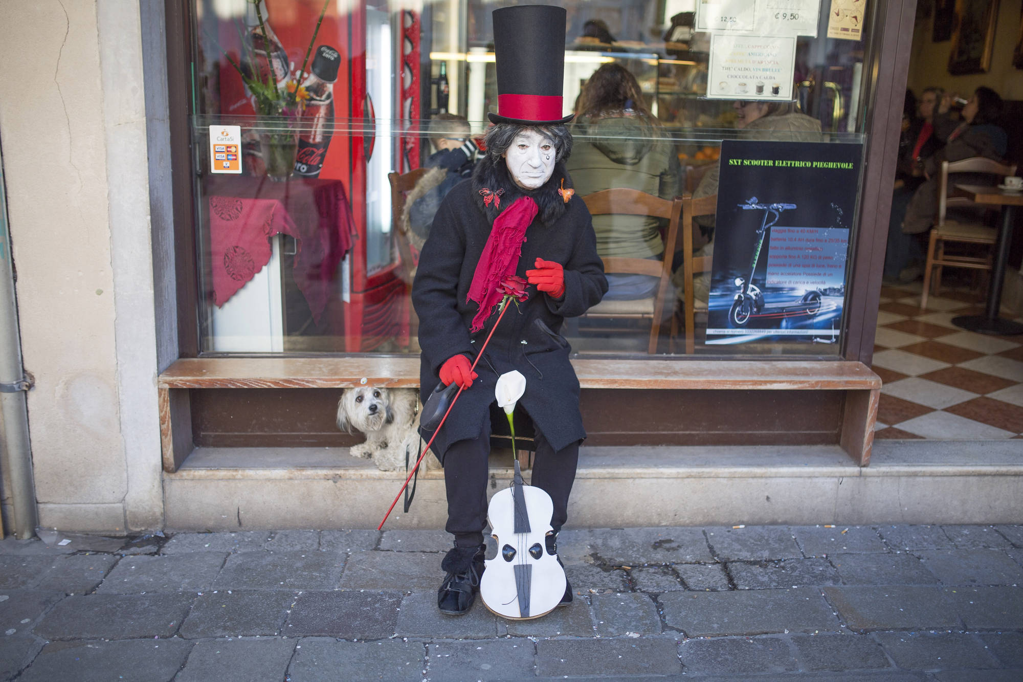Na procházku chodí i maskovaní Benátčané. Mají méně pompézní masky než cizinci, ale zato vypadají velmi důstojně a chovají se přirozeně.