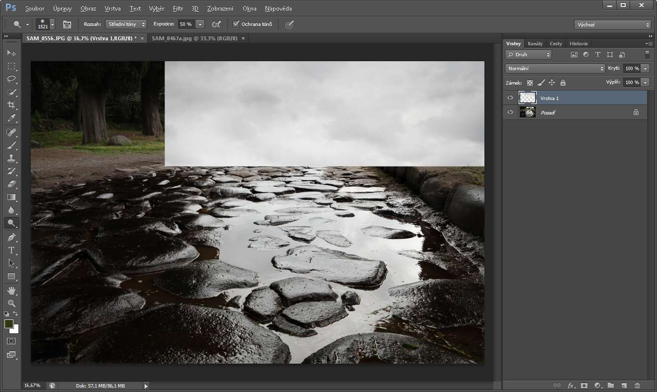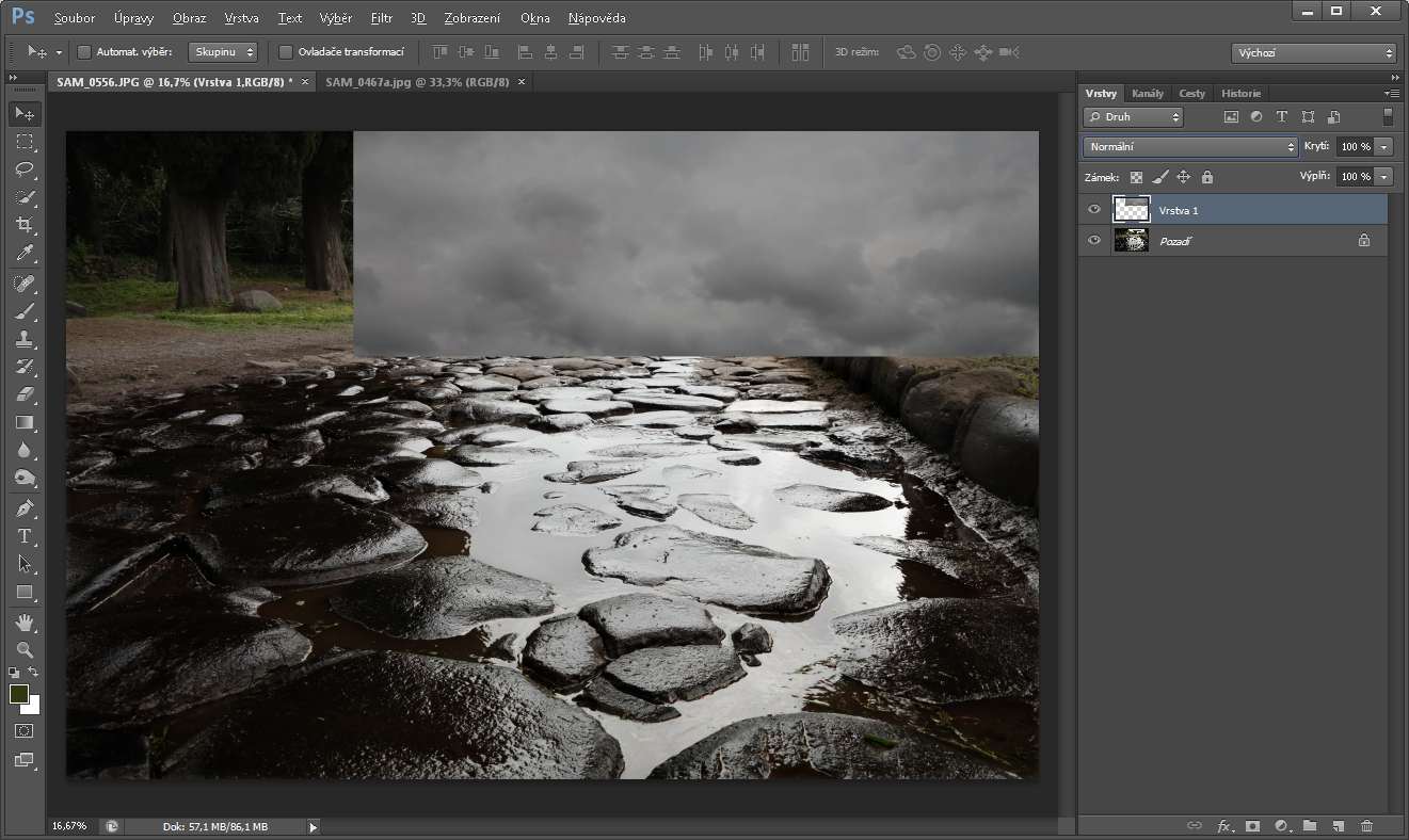 Obrázek je hotový. Důležitá je konečná úprava oblohy, aby nepůsobila cizorodě – nezapomeňme, že zde se odráží ve vodě!