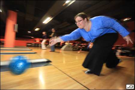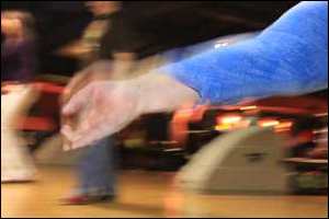 Proto je lépe používat tzv. blesk do pomalého času. Je to režim v anglické terminologii označovaný jako slow flash. Termín je to nejen nepřesný, ale zavádějící. Podstata toho režimu totiž není v pomalosti, ale v tom , že nastavení doby osvitu je nezávislé na tom, zdali blesk používáme nebo ne. Takže třeba na sluníčku nebo i v místnosti při vyšší světelné hladině může být doba osvitu i vyšší než ta 1/60 sec! Zpátky k věci. Bavíme se teď o použití v podmínkách nižší světelné hladiny, tedy v podmínkách, kdy je “málo světla”. Když v takových podmínkách správně používáme blesk (bez ohledu na to zdali vestavěný nebo externí), vykreslí se i vzdálenější partie, a zároveň blesk přisvítí bližší partie, prozáří stíny a dodá jim ostrost. Ukázku máme zde. Fotil jsem bowling, expozice vyšla 1/80 sec na clonu F2.8 při 2500 ISO. Bez blesku by fotka byla rozmazaná. Přisvícení bleskem pomohlo: ![]() V podstatě došlo k dvěma expozicím najednou, jedna na “přirozené světlo”, druhá “na blesk”, obě naráz. Dobře je to patrné, když se podíváme na detaily: