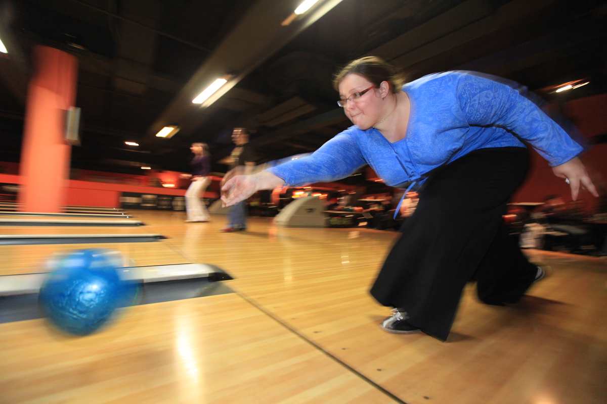 Proto je lépe používat tzv. blesk do pomalého času. Je to režim v anglické terminologii označovaný jako slow flash. Termín je to nejen nepřesný, ale zavádějící. Podstata toho režimu totiž není v pomalosti, ale v tom , že nastavení doby osvitu je nezávislé na tom, zdali blesk používáme nebo ne. Takže třeba na sluníčku nebo i v místnosti při vyšší světelné hladině může být doba osvitu i vyšší než ta 1/60 sec! Zpátky k věci. Bavíme se teď o použití v podmínkách nižší světelné hladiny, tedy v podmínkách, kdy je “málo světla”. Když v takových podmínkách správně používáme blesk (bez ohledu na to zdali vestavěný nebo externí), vykreslí se i vzdálenější partie, a zároveň blesk přisvítí bližší partie, prozáří stíny a dodá jim ostrost. Ukázku máme zde. Fotil jsem bowling, expozice vyšla 1/80 sec na clonu F2.8 při 2500 ISO. Bez blesku by fotka byla rozmazaná. Přisvícení bleskem pomohlo: ![]() V podstatě došlo k dvěma expozicím najednou, jedna na “přirozené světlo”, druhá “na blesk”, obě naráz. Dobře je to patrné, když se podíváme na detaily: