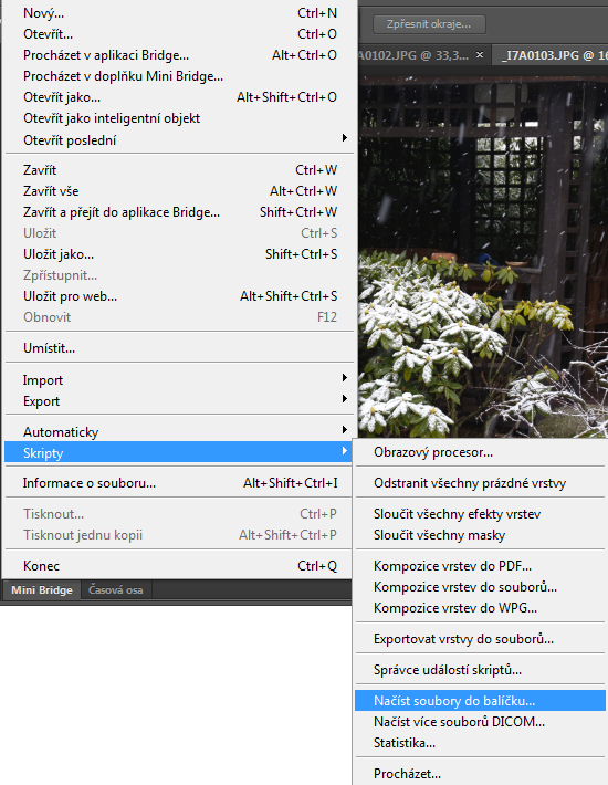 Pak jdeme do menu Soubor a jdeme do Skripty – Načíst soubory do balíčku.