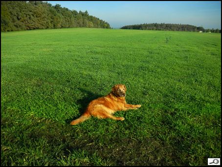 Méně často se režimy prolnutí používají v souvislosti s jinými nástroji, s klonovacím razítkem a štětcem – právě štětcem se dnes budeme zabývat. Vezměme si jako příklad fotku sousedovic Betynky, vyfotil jsem ji dnes na procházce s naší Iriskou: