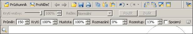 uvnitř obrazu. Razítko má parametry, ty najdeme po volbě nástroje nahoře: