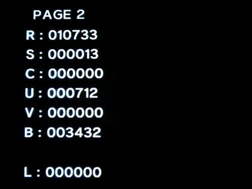 Jsme skoro doma. Musíme po sobě stisknout nahoru, dolů, doleva, doprava, spoušť přístroje a ještě jednou šipku nahoru a objeví se stránka 1 skrytého menu: