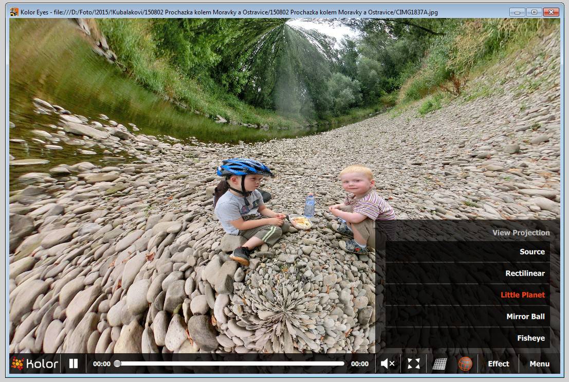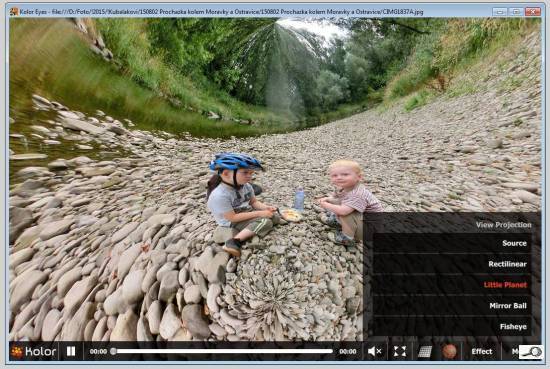 Pan Boris Škandera osvěžil naši okurkovou sezónu seznámením se zajímavým prográmkem. Je to freeware a primárně slouží primárně slouží jako přehrávač panoramatických (360°) videí. Když ale do něho vložíte JPEG fotku (RAW neumí 🙂 ), dělá s ní psí kusy.