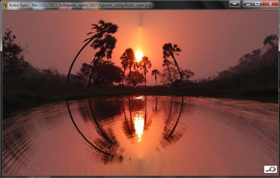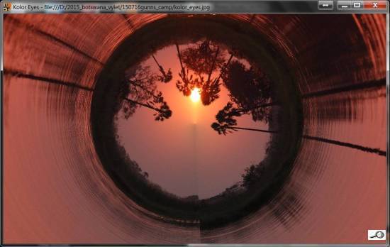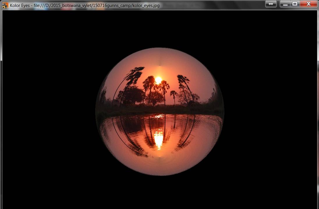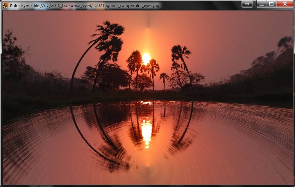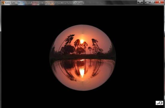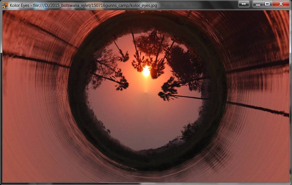 Nicméně zpátky k prográmku. Je to zřetelně nadšenecký softík plný mušek, které by nás rozčilovaly, kdybychom si ho koupili, takže spíš pobaví než rozzlobí, protože je to free. Obrázky opravdu nejde uložit jinak než screenshotem, takže se to hodí jako legrace pro Facebook, případně pro webové stránky. Jednotlivé úpravy se zachycují v jakýchsi vrstvách. Lze se vrátit do výchozího stavu (View Projection: Source), ale pak další úpravy vycházejí nikoli ze zdroje, ale z poslední úpravy. Rozhodně je to zajímavá věc, jistě nás bude víc kdo jsme Borisi Škardovi vděčni. Nedá mi, abych nepřipomenul Sphericam, onen startup, psal jsem o něm předminulý týden. Holt, časy se mění a 360stupňová fotografie díky – hlavně – mobilním telefonům jistě má svoji budoucnost. No a tohle jsou jakési červánky úsvitu nové fotografické techniky. Taky jsem si hrál… s červánky.