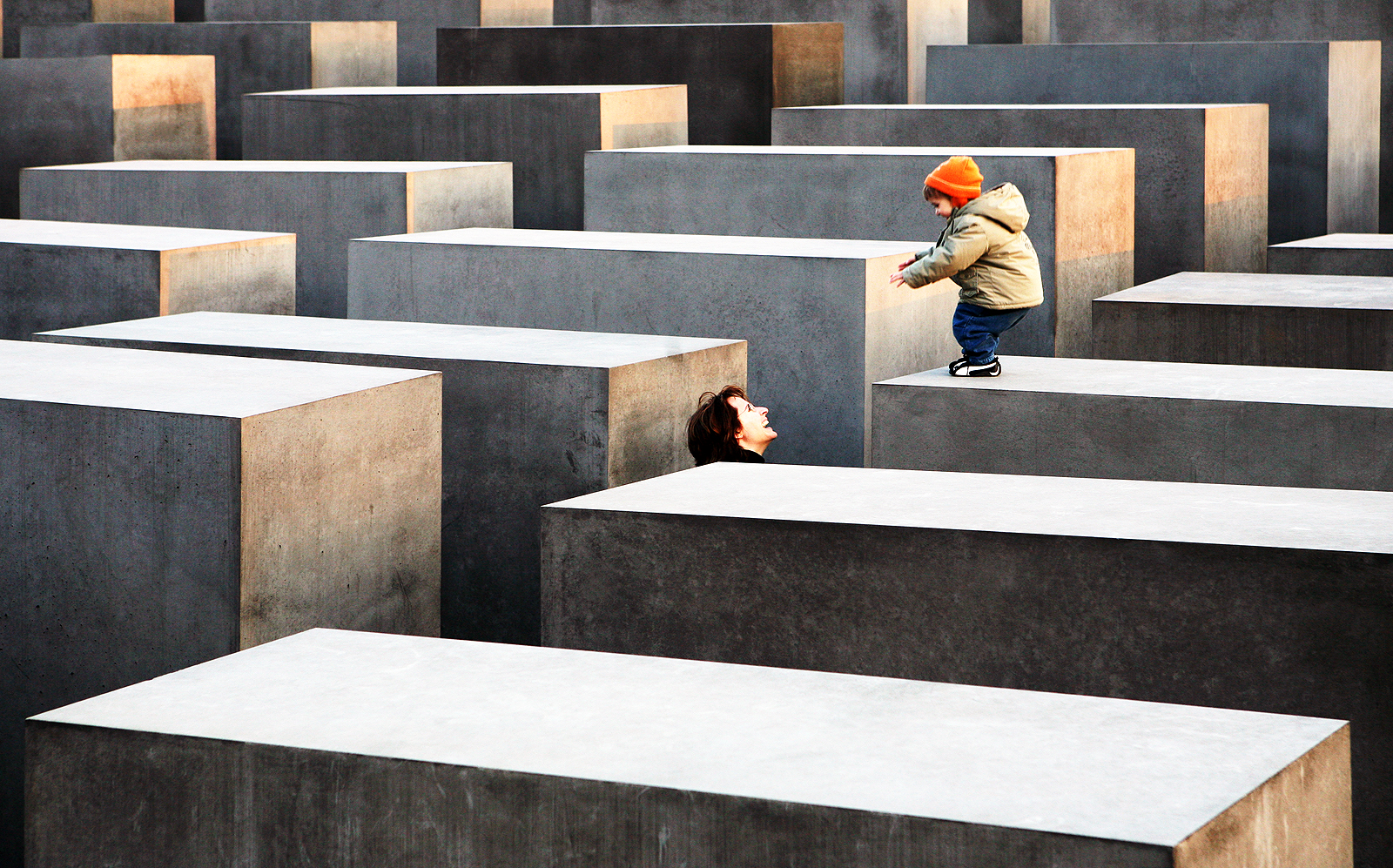 Mohla by fungovat jako výuková pomůcka. Především je založená na obrazovém kontrastu. Betonové bloky, těžko si představit něco chladnějšího, životu více odcizeného. A v tom si hraje maminka s dítětem. Je to příběh, je to symbolika, má to poselství – ve smyslu „civilizaci navzdory“. No a po stránce formální – stojí to na silné diagonále, to za první. A všimněte si, jak precizně jsou odsazené od okrajů ty bloky, to za druhé. Přesně viděné, přesně zachycené. Je to nahrané? Spíš ano než ne, ale co na tom? Tvorba není sportovní disciplína.