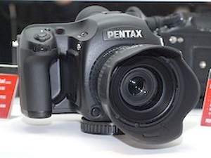 se dozvídáme z automatického překladu, že Pentax zastavil vývoj a soustředí se na stávající řadu zrcadovek s bajonetem K. Toto je jedna z vystavovaných variant tehdy ještě chystaného velkoformátového DSLR Pentaxu:
