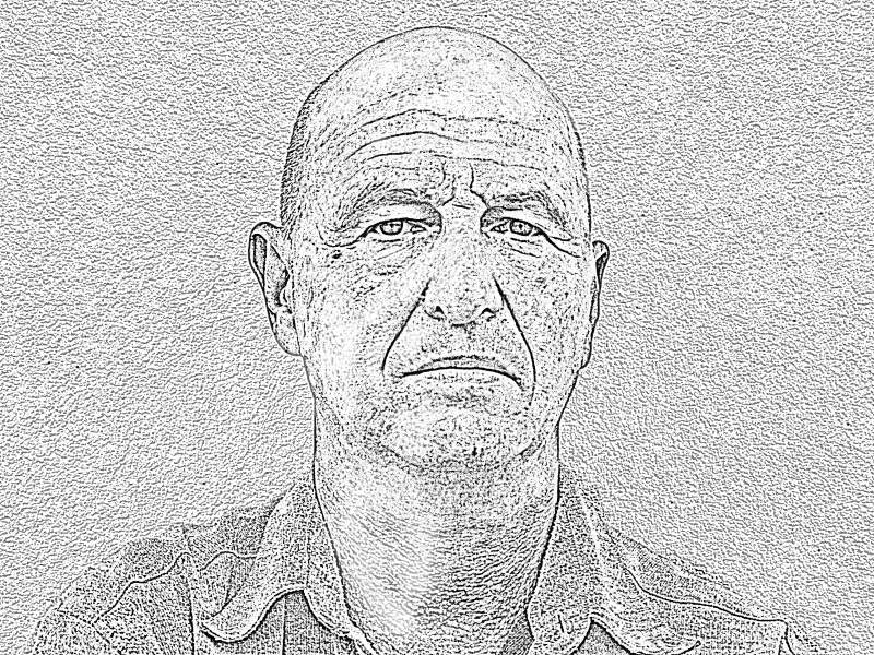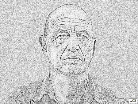 No a protože jsem starý ješita, vyrobil jsem si autoportrét. Takhle vypadá. Mohl bych předstírat, že jsem se naučil kreslit… Uvěřili byste?