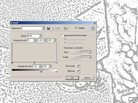 Vezmi úroveň 0 (černou) a udělej z ní úroveň 160 (světle šedou). Jaká je to šedá vidíme v pozadí dialogu. Takto převádíme černou na libovolnou šedou.