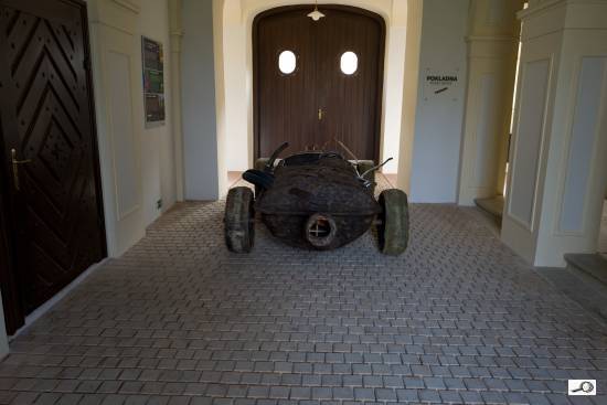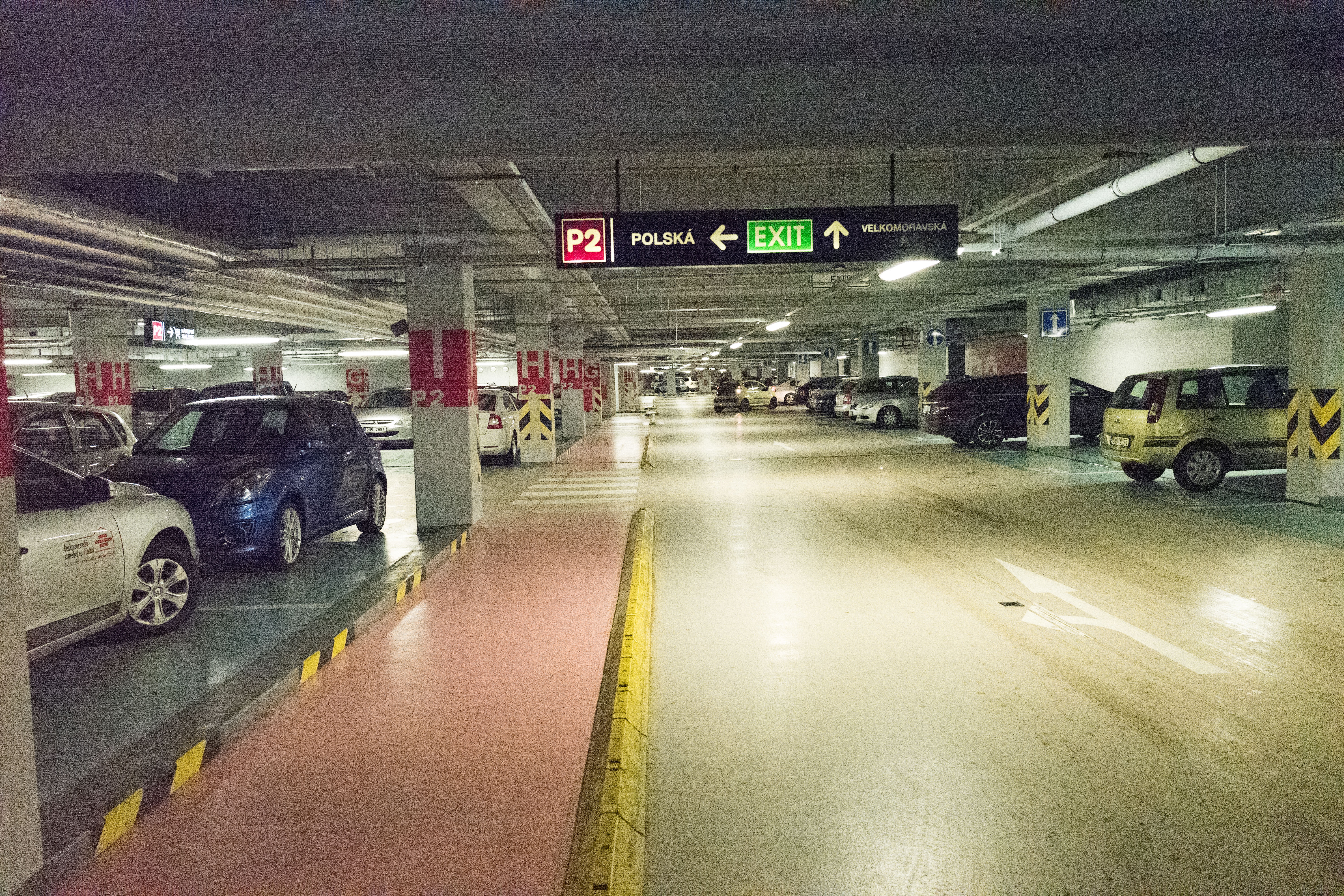 Vyšší ISO – zde je to 3200, ostrost je na masce auta, na jeho znáčku. Při cloně F2.0 je hloubka ostrosti i při f=28 mm malá.
