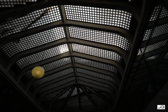 Záběr klenby – je to snímáno bez korekce na clonu F3.5. Expozičně je to posazeno hodně nízko, převládají slité stíny. Kresba je perfektní.