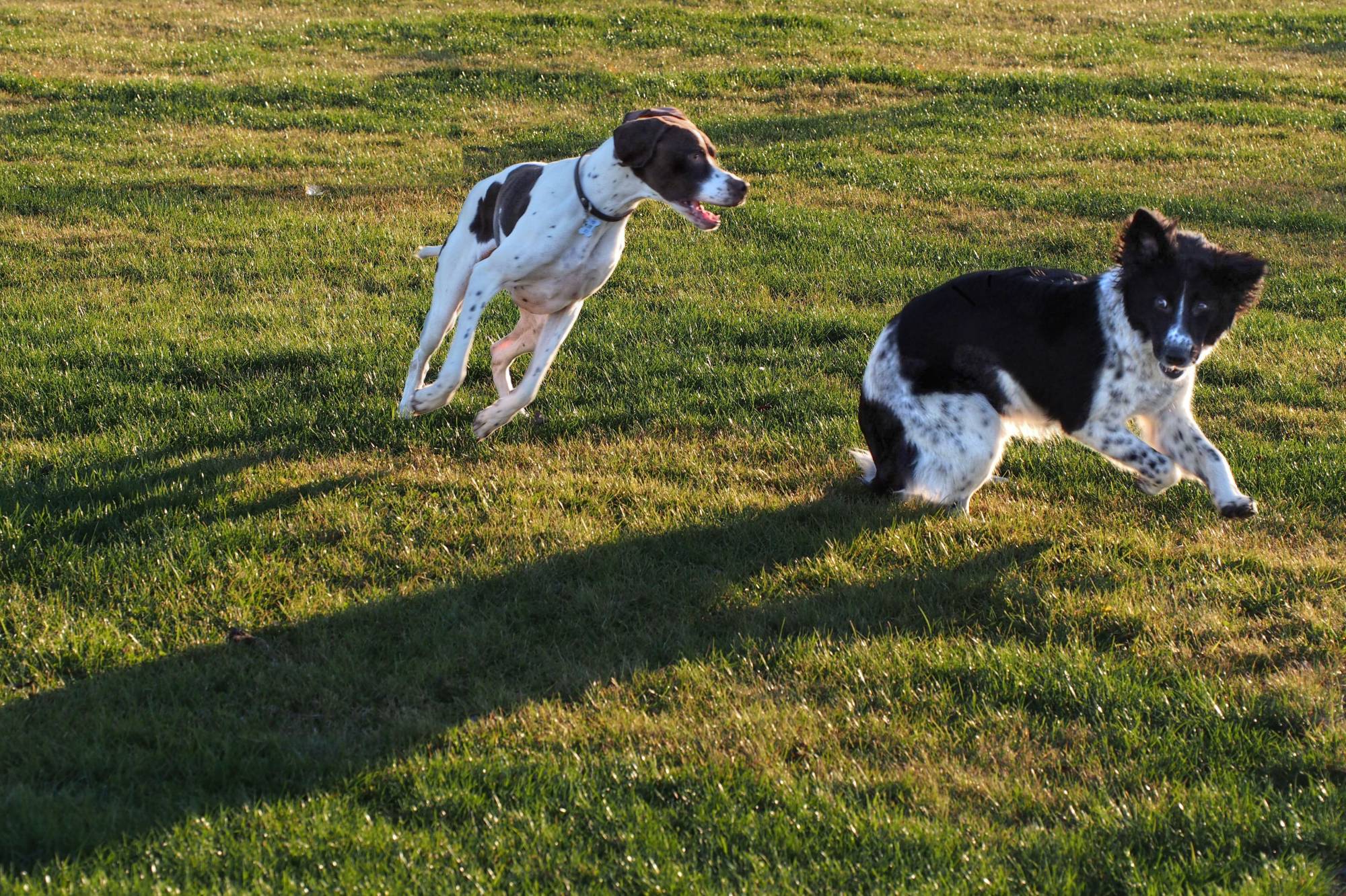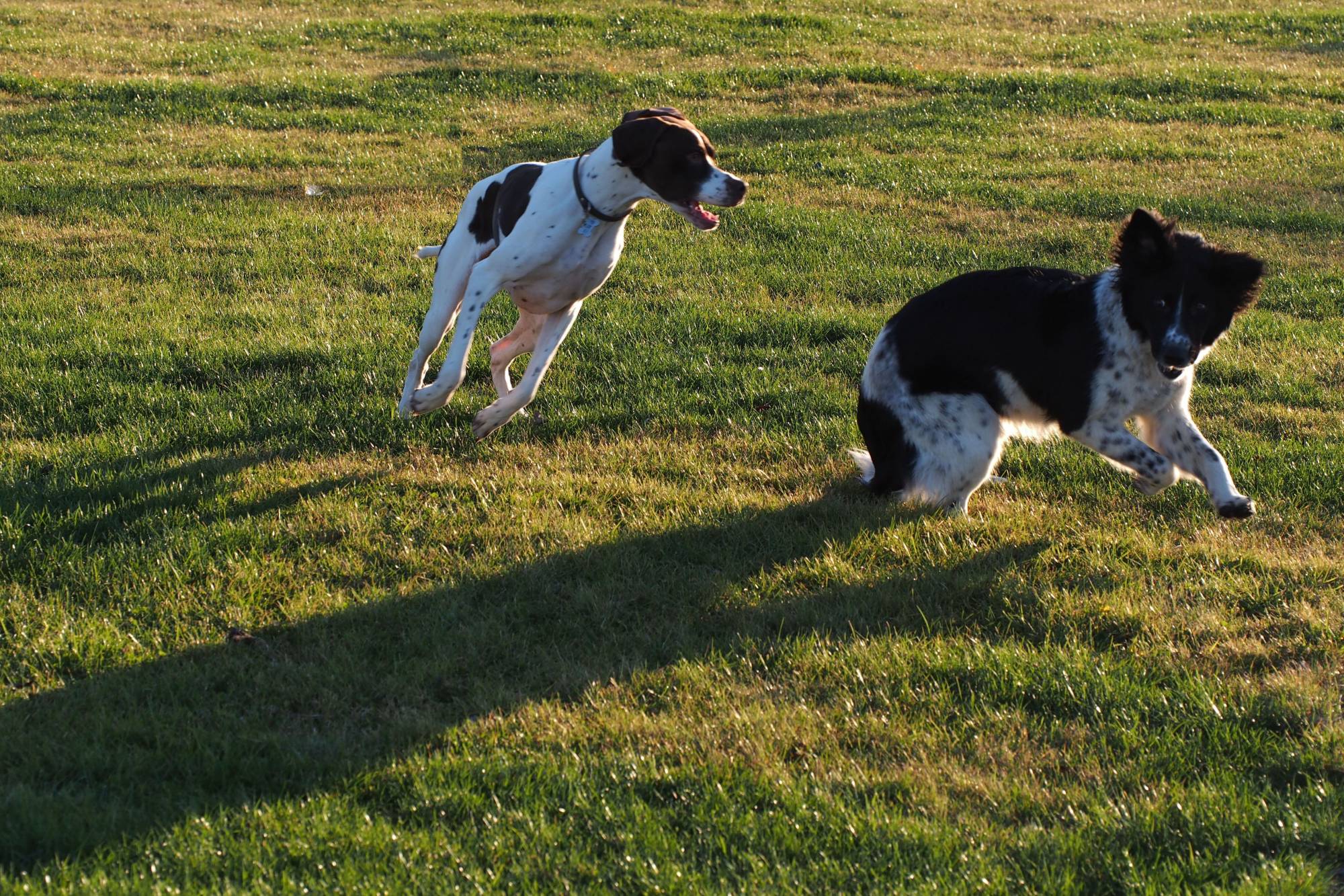 No a výsledná fotka si zachovala podvečerní atmosféru, ale pejskové jsou lépe vidět. A o to šlo.
