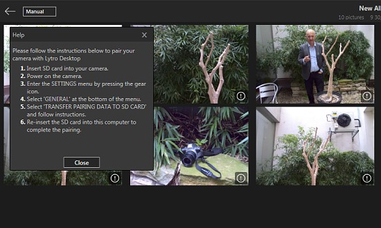 Fotky doneseny domů, nainstalován soft stažený z Lytro.com, načež se ukázalo, že si přístroj přeje párování s kartou, respektive s počítačem, takže pořízené fotky si mohu nabouchat do kecek, eventuálně strčit mezi dva chleby.