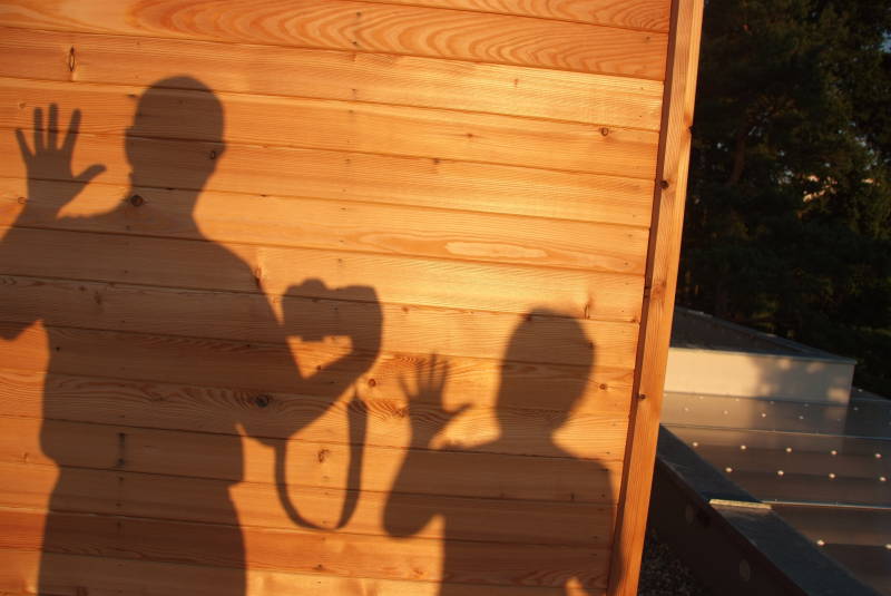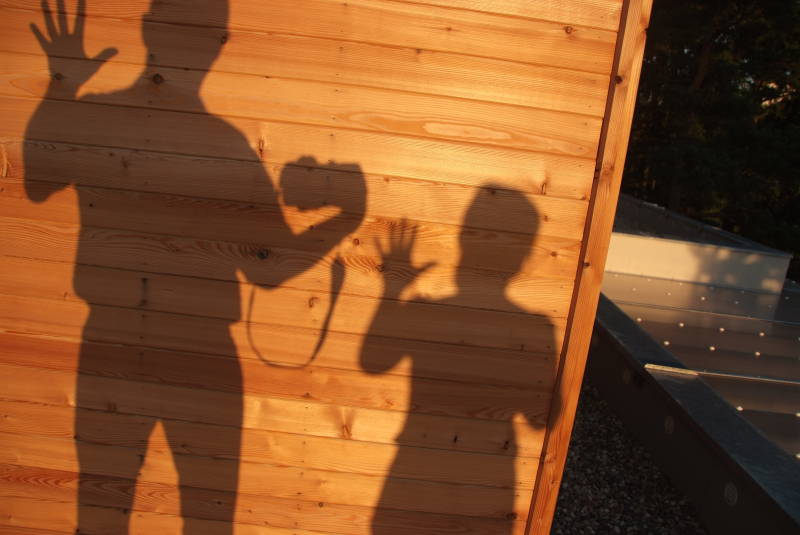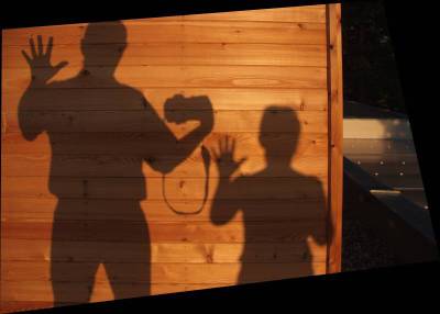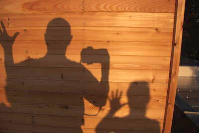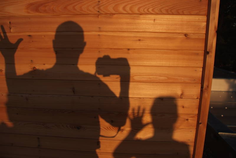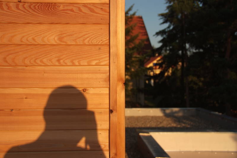 Dnes si ukážeme malou hříčku – o realizaci jednoho nápadu, nejdřív v terénu, pak v počítači. Začalo to na návštěvě u známých. Mají dřevěný dům. Večer svítilo na terase načervenalé světlo. Všiml jsem si svého stínu na dřevěné ploše.