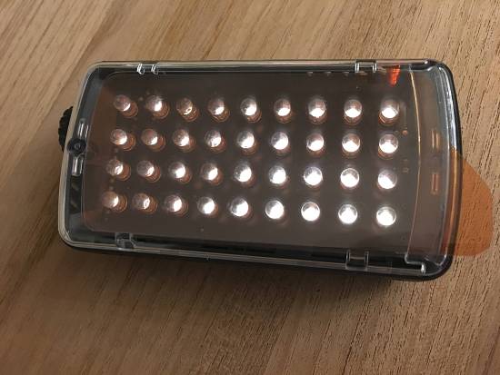 Na našem Facebooku jsem už ukazoval, jak jsem v deštném pralese LED svícením mobilu přisvěcoval ježatou potvůrku, která tam lezla po stromě. Na stejném principu fungují LED svítilny. Používám svítilnu Manfroto, měří 6 x 12 cm, vejde se snadno do kapsy a neváží skoro nic. Má regulaci síly osvětlení a dá se do ní strčit barevný filtr, já tam mám oranžový na zteplení světla.