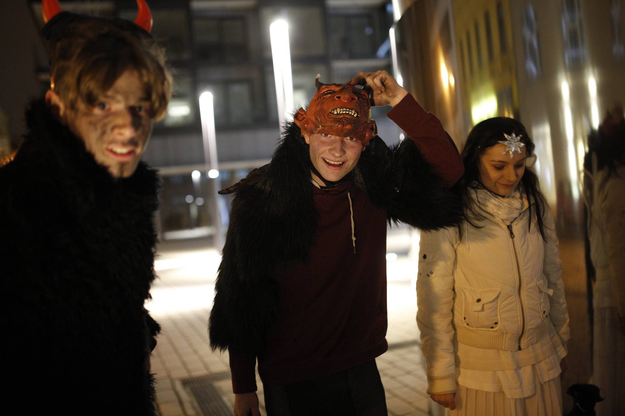 Už loni jsem s Dílnou fotil Mikuláše za přispění LED svícení. Lampu jsem nechal doma při cestě na Filipíny a přisvěcoval jsem si mobilem. Na Mikuláše jsem si ji vzal. Ale nebyli Mikulášové! Ono s tím přisvěcováním… Samozřejmě že příručka velí – použít blesk. Jenže je v tom problém. Blesk je skvělý pomocník, když je relativně dost světla. Snadno si vyladíte poměr přirozeného a přiblesknutého světla, obvykle volíme korekci expozice o třetinku do mínusu a blesku snížíme intenzitu, já obvykle začínám na -1 EV a dopadne to dobře. Obvykle, zvlášť při protisvětle.