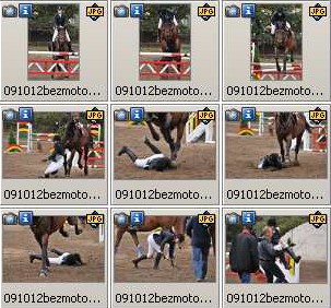 Volně navazuji na nedávnou debatu o sériovém focení a výběru. Posluchač mé Dílny pan Vratislav Dluhoš laskavě poskytl fotky, které pořídil na našem sobotním semináři na ranči Opatrný u Hořovic. Sám ten ranč je překrásný, lze se tam i najíst a ubytovat (penzion a restaurace), zde je odkaz ja jejich stránky. O víkendu tam byly jezdecké závody. Fotili jsme tam skvělé jezdce na nádherných koních – ale jak to tak bývá, dnešní pozornost soustředím an jediný zádrhel, který se tam vyskytl. Jezdkyni se nic vážného nestalo, dodám ještě. Zkrátka, stalo se, že jezdkyně – nebo kůň – nebo oba zaváhali a jezdkyně spadla, naštěstí šťastně. Tohle je devět z oněch deseti fotek, které Vráťa Dluhoš pořídil: