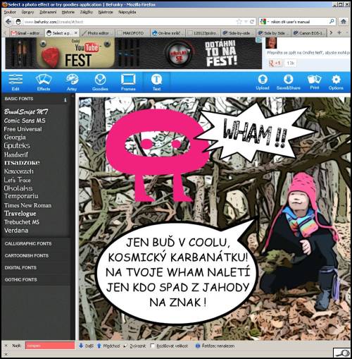 To si zaslouží velkou pochvalu, i když jsou fonty, kde čeština selže, jako třeba Digna´s Handwrighting. Nicméně spolupráce s windowsími fonty je velmi dobrá. Takže lze snadno vyrobit z vašeho dítěte comicsového hrdinu: