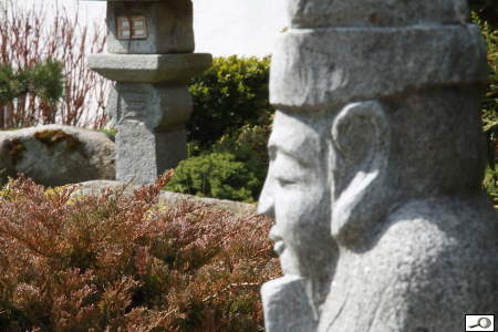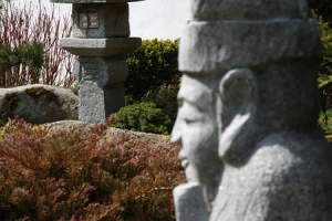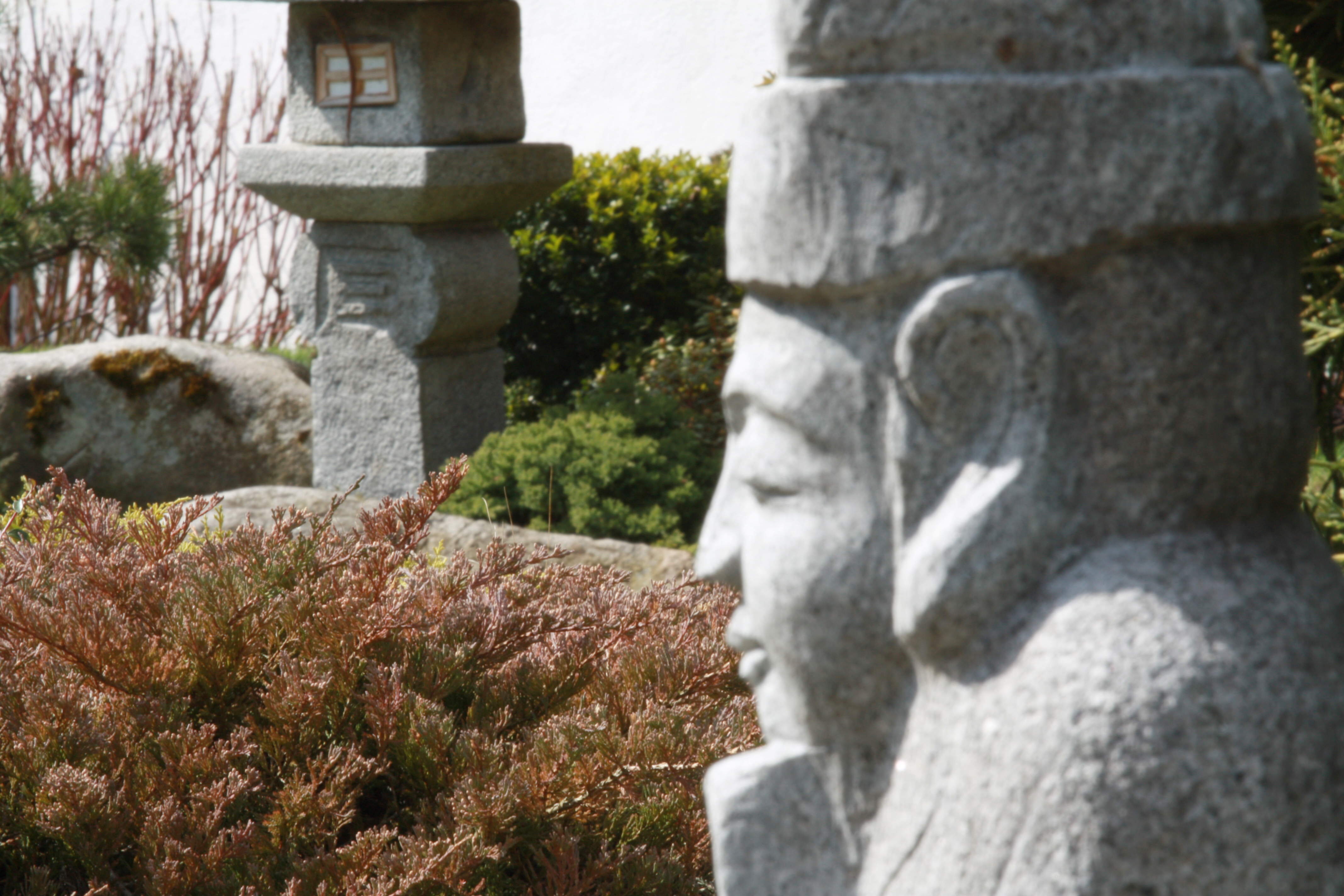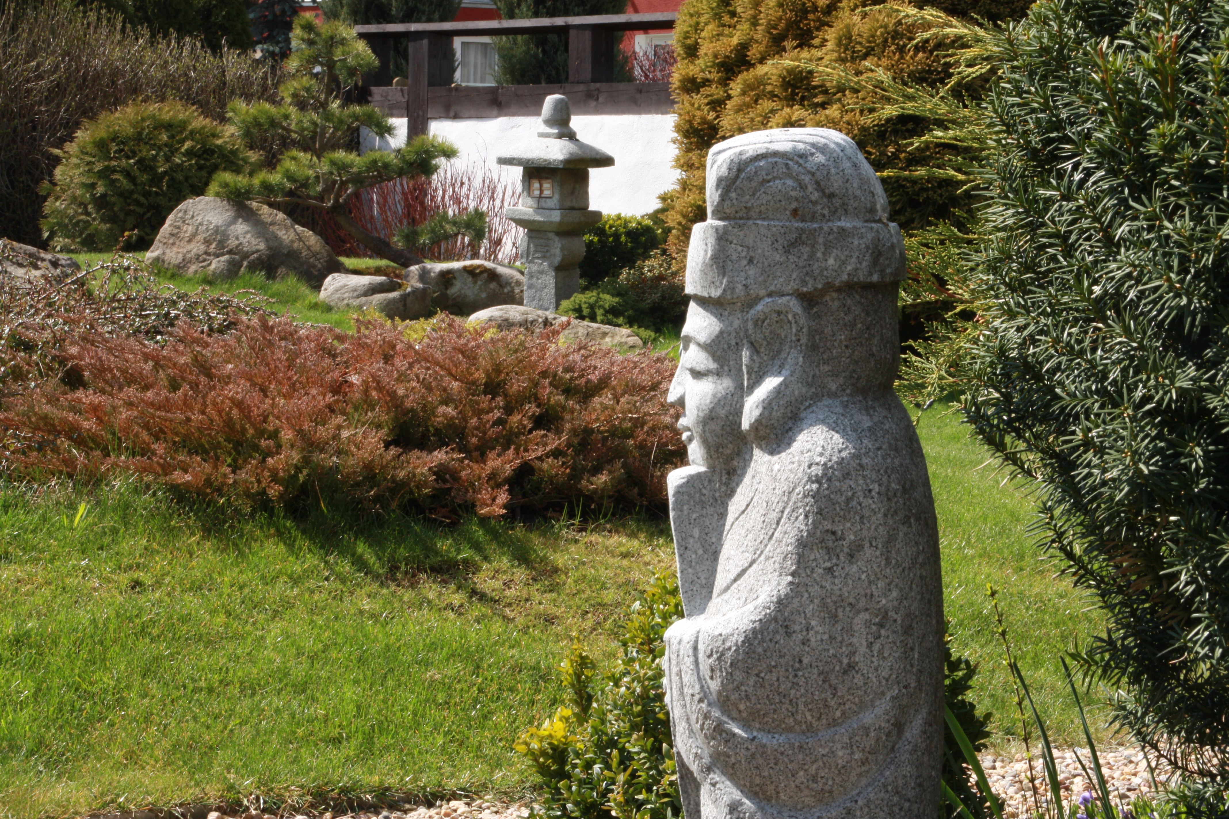 Existují na to tabulky, pro praxi stačí si zapamatovat, že je dobře ostřit asi na úroveň první třetiny vzdálenosti. Čili to červené křoví je vzdálené od sochy asi 4 metry a poslouží jako zaostřovací bod v ručním režimu nastavení vzdálenosti. Na tuto vzdálenost jsem zaostřil a vysoká clona se postarala o kompromisní, nicméně výrazné proostření směrem od zaostřovacího bodu oběma směry. Nejvíc ostré je samozřejmě to křoví, nicméně oba artefakty jsou ve slušné úrovni ostrosti.