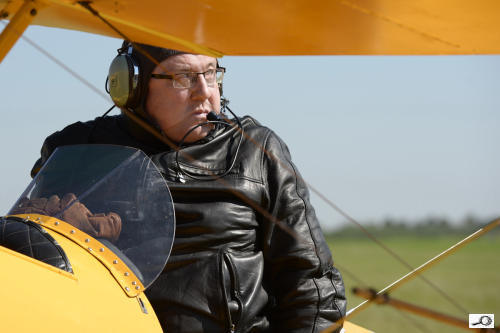 V rámci žánru portrét má své místo portrét reportážní. Sem patří Pilot od Vratislava Dluhoše. Komunikace s modelem se nevylučuje – osobně si myslím, že komunikace zpravidla vede k lepšímu výsledku – ale není podmínkou. Zde se zřejmě nekomunikovalo. Jsme zřejmě na prezentaci nějakého historického létání a letadlo tvoří rámec portrétu. Žádné svícení, žádná zamžená okna, žádné dvojexpozice anebo práce v Photoshopu – v jistém smyslu je to čistá reportážní fotka portrétního charakteru. Podstatný na ní je výraz toho člověka, jeho začlenění do celkové situace. Opět – příběh.