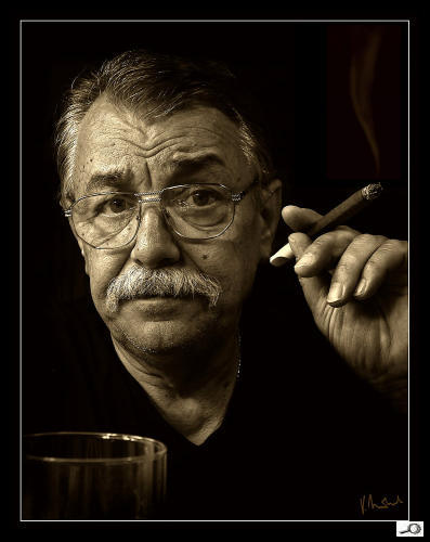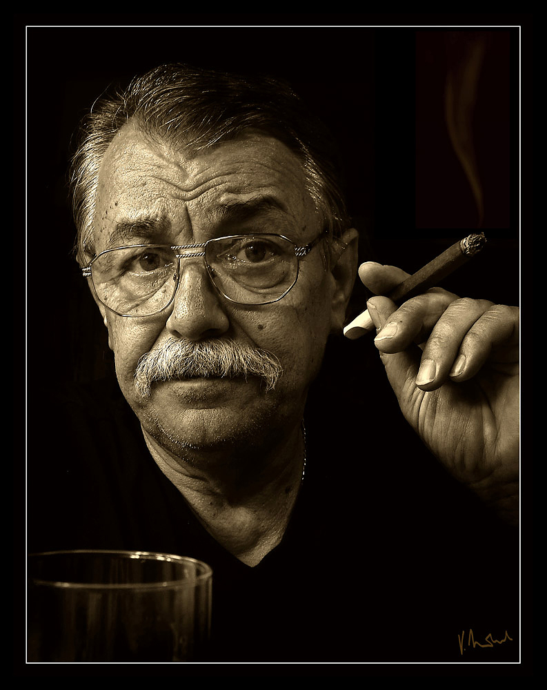 Vlastimila Mihala jsem zařadil jako první a těší mě, že momentně, tedy v pondělí 9. září, je na první pozici. Je to klasický portrét se vším všudy. Jde o portrét aranžovaný, model spolupracuje. Autor ho vedl dobře, protože Pavlova tvář je uvolněná, není v ní žádné napětí, takový ten pocit „kdy mě sakra přestane otravovat“. Dvě rekvizity, doutník a sklenička vlevo dole, nenápadně charakterizují, že Pavel pravděpodobně nepokládá sborový zpět na kostelním kůru za své hlavní povyražení. Tváří se vážně a přesto máme pocit, že má smysl pro humor a v sobě dost moudrosti, aby to nebyl humor laciný a zraňující. A je to opět tady – z portrétu čteme příběh. Z dobré fotografie velmi často čteme příběh. Ať nakonec tahle fotka dopadne v pořadí jakkoli – máme před sebou ještě dvě třetiny toho běhu na střední vzdálenost – bude patřit k velmi dobrým dílům, jaká byla zaslána.