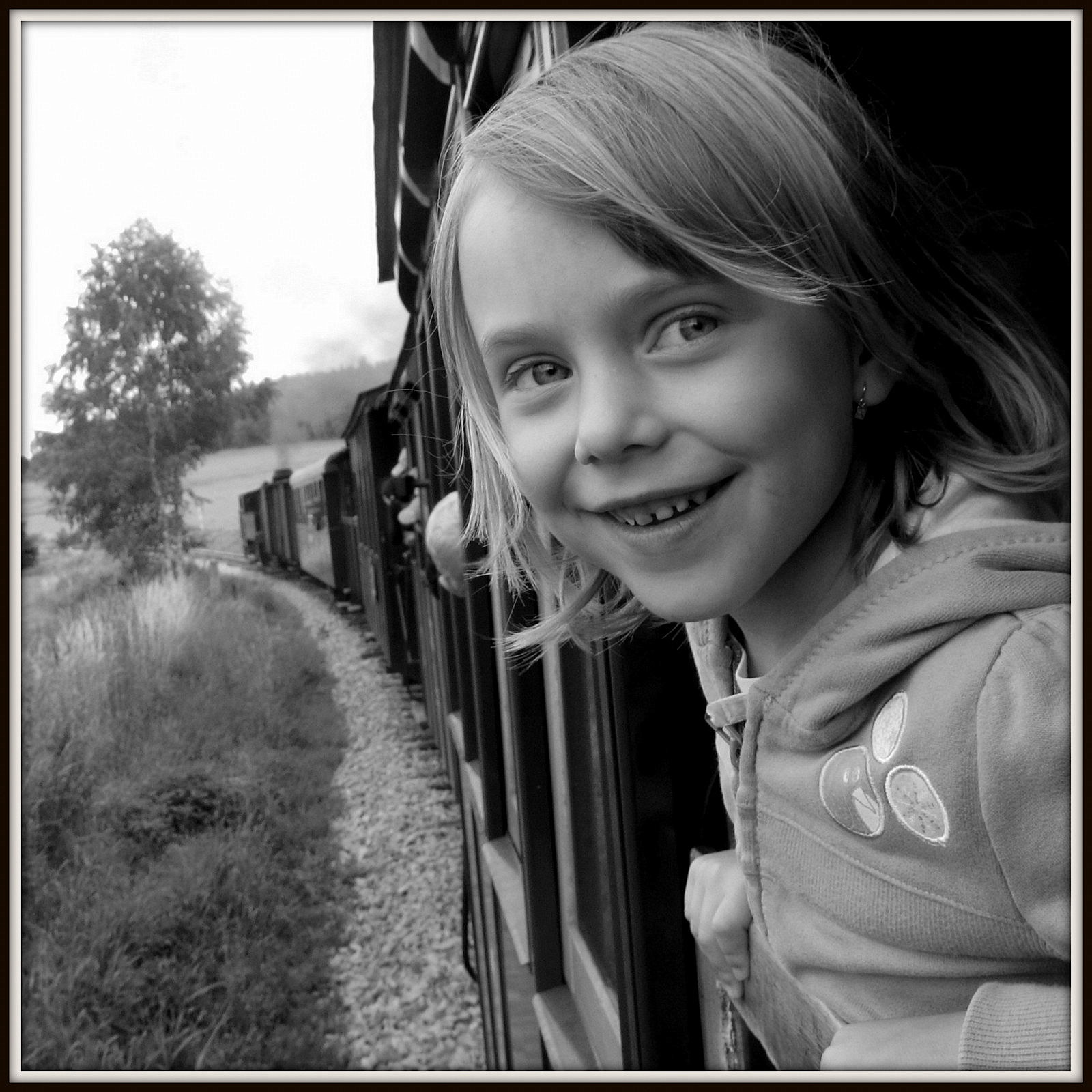 Závěrem jsem si nechal ukázku práce typu, jaký se mezi zaslanými soutěžemi vyskytuje nejčastěji. Je to Katka od Evy Rusové. V podstatě je o rodinnou fotku z výletu, proč ne? Naprosto v pořádku, od toho ty foťáky máme, abychom fotili na výletě. Ve snímku je ve zkratce zakukleno vše podstatné. Jede se vlakem, Katce se výlet líbí, ale pozor, není to jen tak nějak odprásknutá fotka. Je pečlivě načasovaná, mašinka jede do levé zatáčky a i ten strom tam hraje roli, uzavírá kompozici, kdyby tam nebyl, zůstala by po něm díra v nebi. Je to příklad inteligentně i vtipně pojednané rodinné fotky – a i ta patří do vznešené a významné disciplíny zvané portrét.