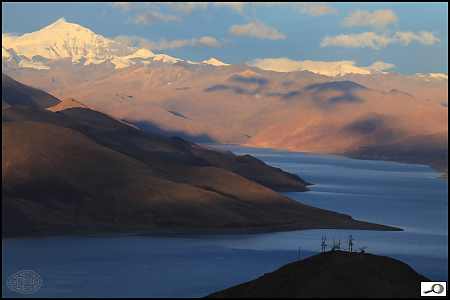 Přirozeně, že krajinářská fotografie je zásadně závislá na světle. No a nejlepší světlo je ráno nebo večer. K tibetskému posvátnému jezeru Jomdrok jsme přijížděli na úsvitu. Dokud se slunce nevyhouplo nad hory, nemělo smysl tahat foťák z brašny. Ale jen povylezlo, už mi to nedalo.