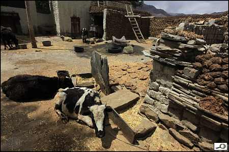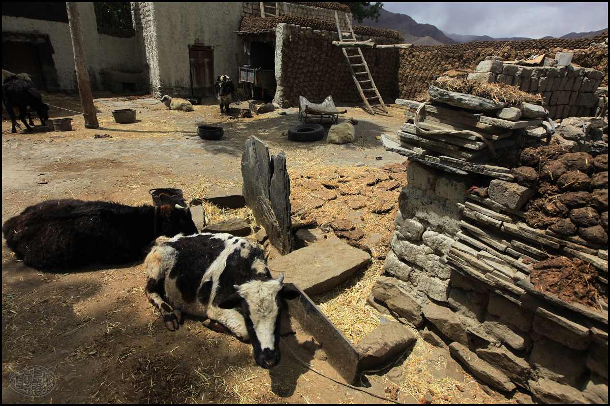 Uvnitř za bránou je zhruba to, co jsem znával za svého dětství i v naší vesnici. Žijí tu hospodářská zvířata – jakové, a je tu to, co hospodář potřebuje k životu.