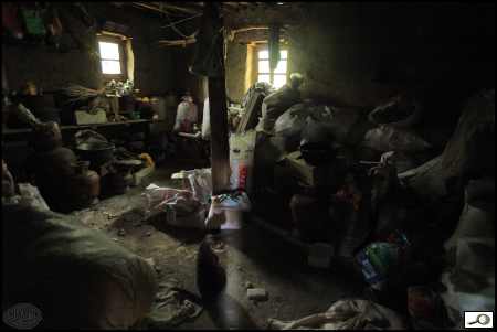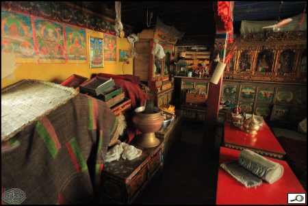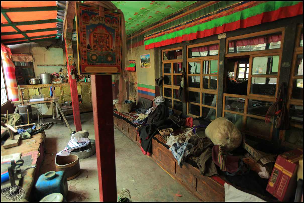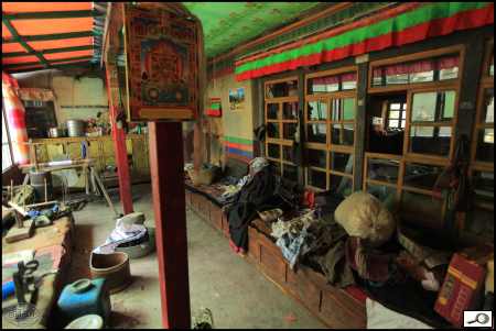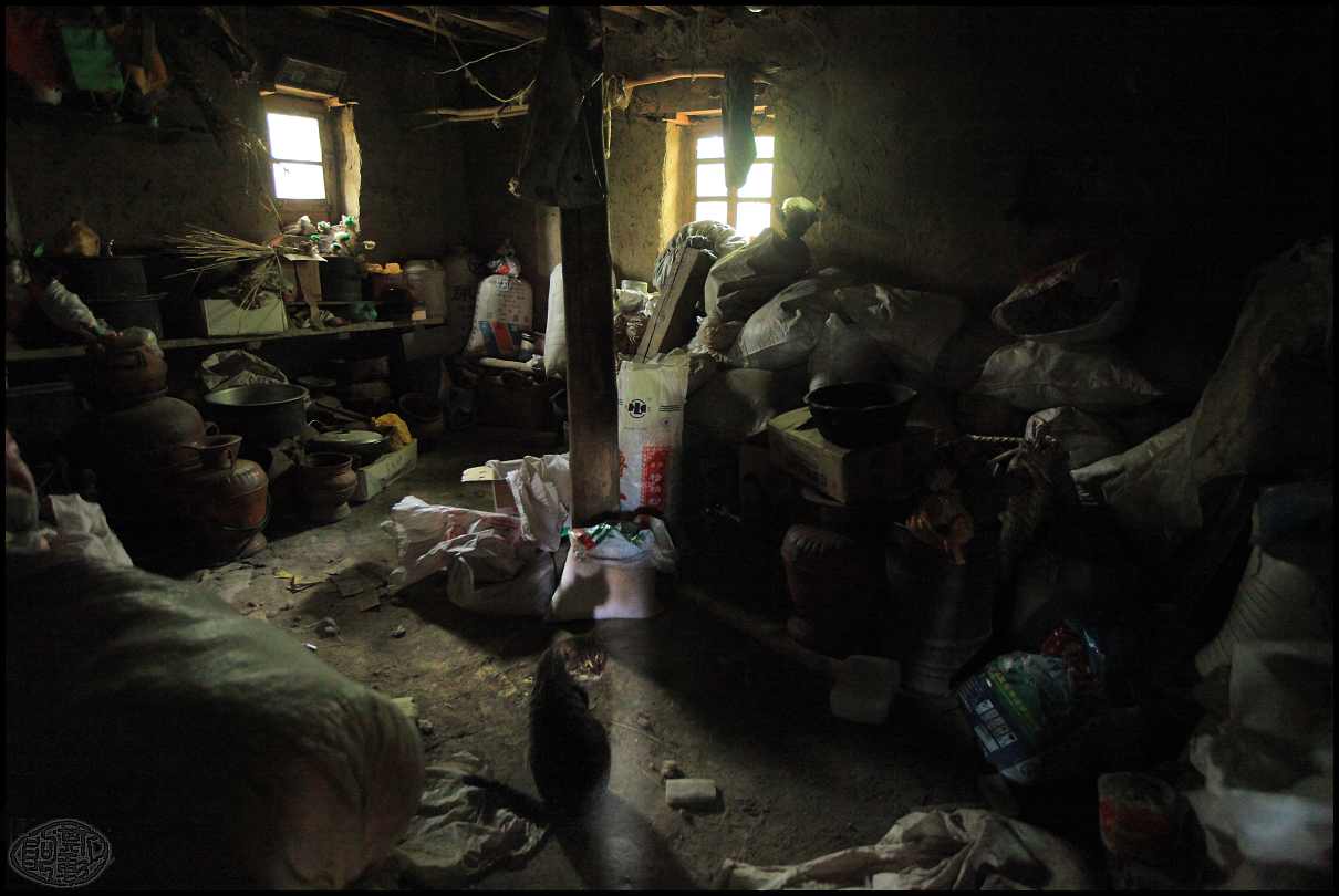 Výjimečná místnost v domě je svatyně. Na dvoře mají modlicí mlýnky a toto je něco jako kaple. Používají to při slavnostních příležitostech v rodině. Technicky, pořád totéž – široký úhel záběru, kompenzace -1 EV. Inu, Canon Mark II zvládne 6400 ISO, ale i tak je to třicetina na F2.8. Není to moc vidět…