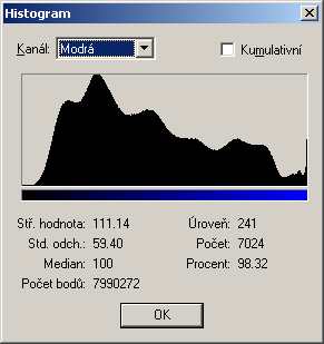 Tady je vidět, že obrázek je trošku bohatší v modré než v červené, v modré vidíme i maličké přepaly, ale jinak je obraz v pořádku.