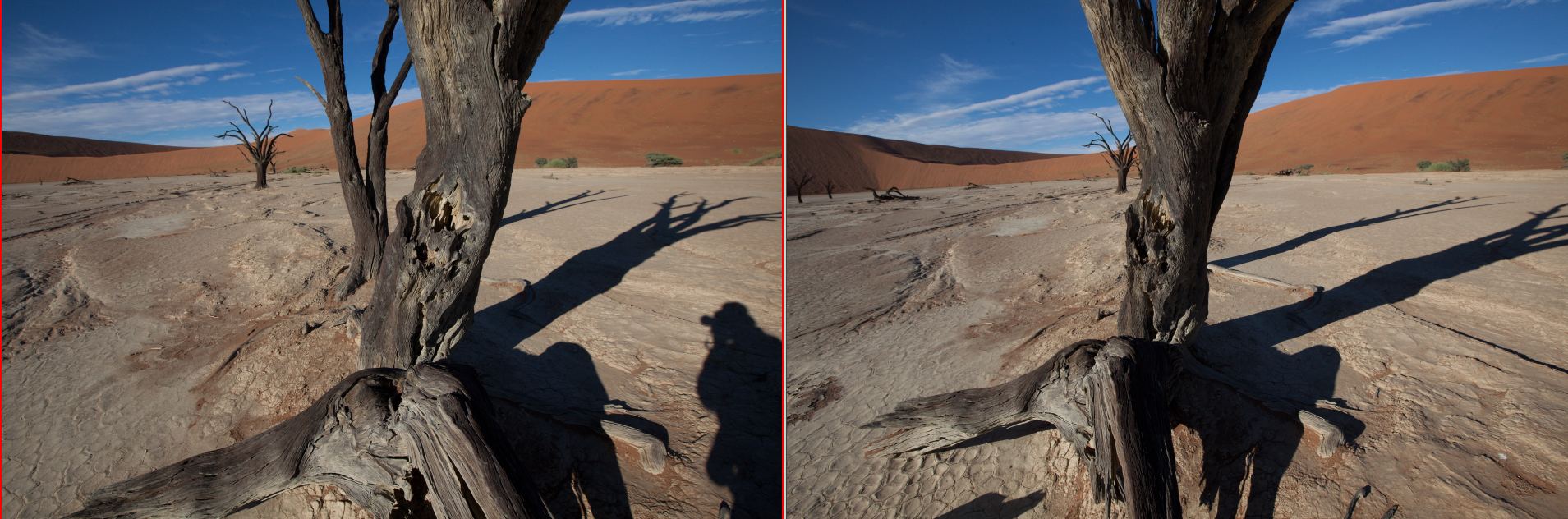 Přesně stejnou metodou jsem postupoval, když jsem zakopl o vlastní stín při fotografování v namibijském Sossusvlei: