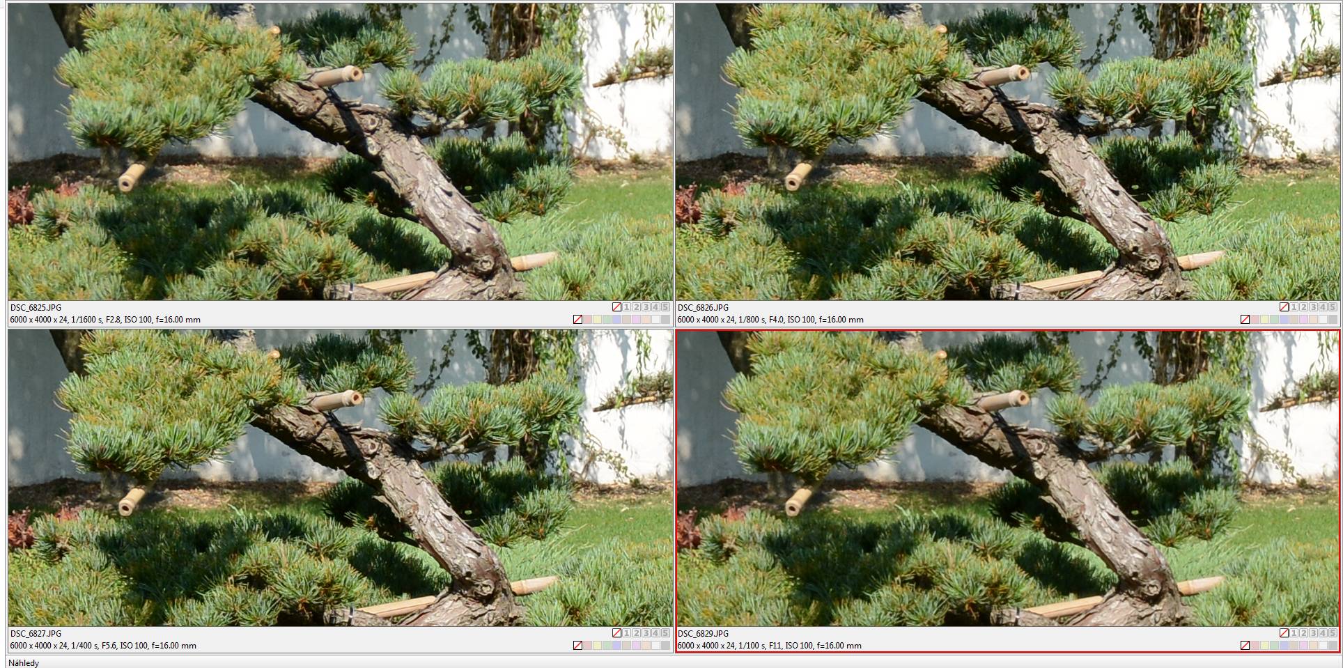Za určitých okolností se vyskytnout mohou, ale v míře nepatrné. Také vinětace zde patří k nulovým problémům. Zde je to při 16/2.8, přičemž zmenšení původně 24megového obrázku na šíři 550 bodů vede ke zvýšení kontrastu.